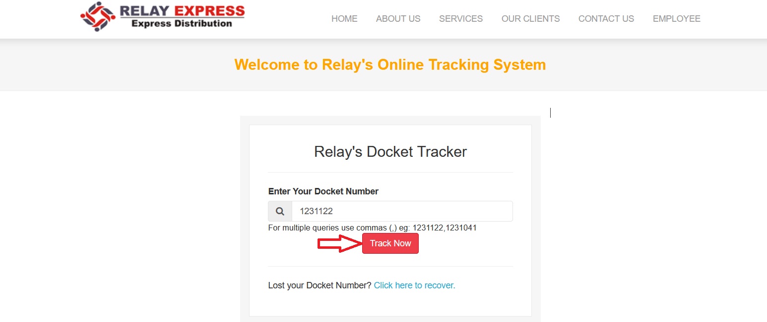Step-1 : Go to the link https://erp.relayexpress.in/DocketWebTracking.aspx