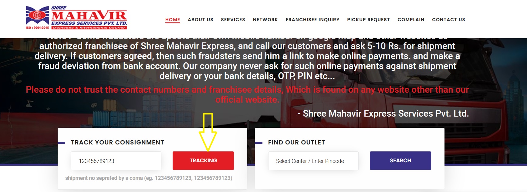 To Track Shree Mahavir Express Consignment Online, Follow the below steps