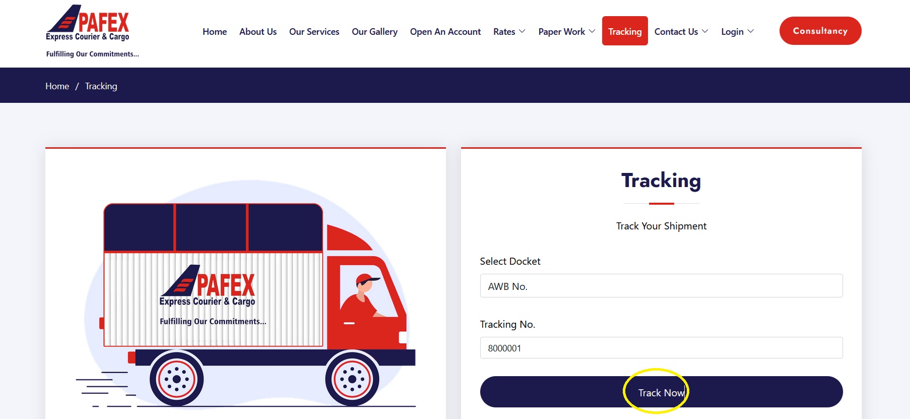 To Track PAFEX Shipment Online, Follow the below steps
