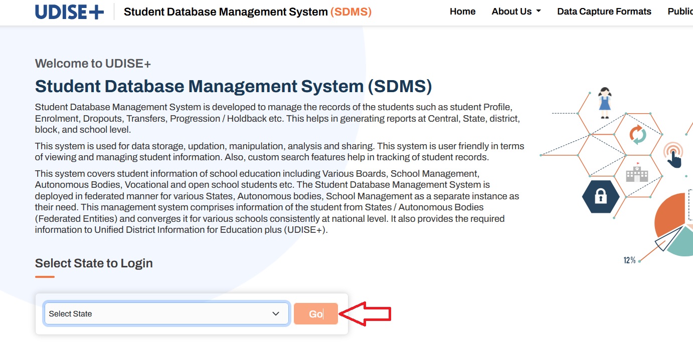 To login to UDISE+ Student Database Management System (SDMS), Follow the below steps