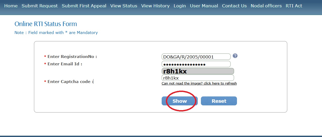 On submission of a RTI-application, a unique registration-number will be issued which may be referred by the applicant for any future reference. This unique number will be sent by SMS as well through e-mail to the applicant.