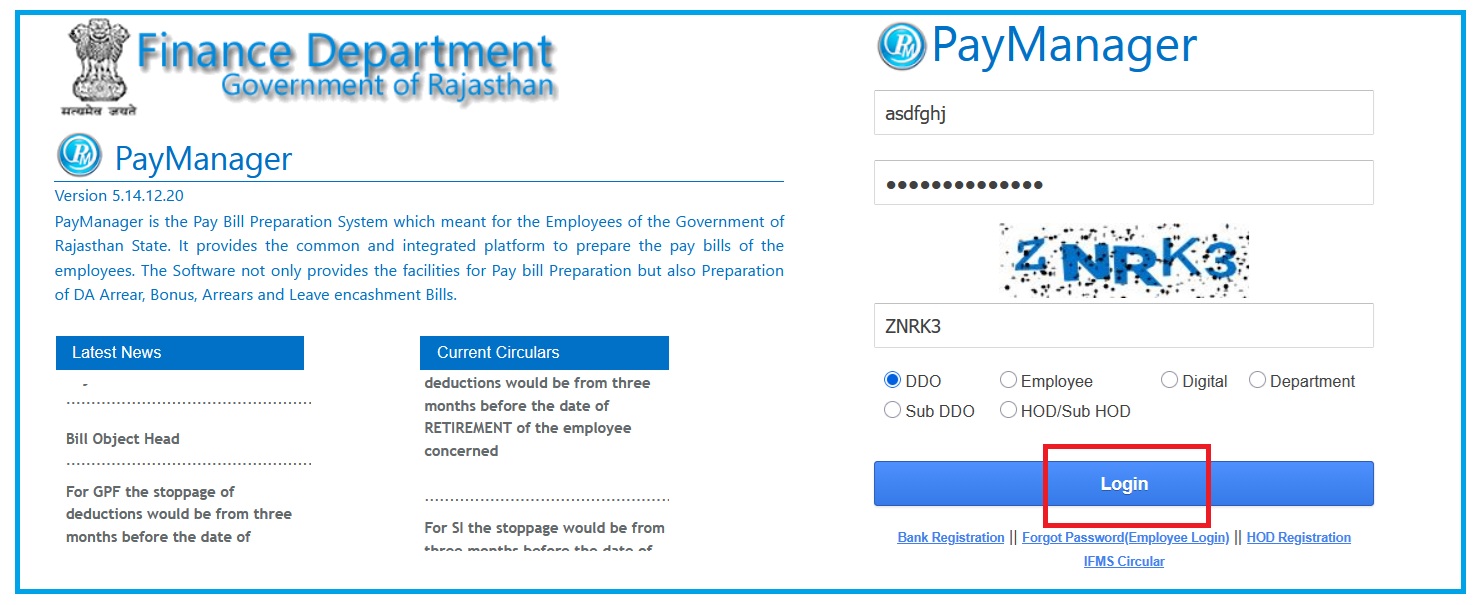 For employees, use the paymanager.rajasthan.gov.in portal.