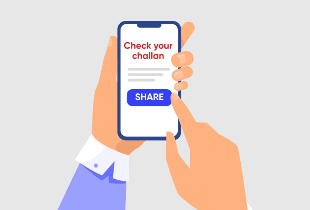 If a RTO or a Police Officer issued an e-Challan in electronic device for violation of any M.V. Act and rules made thereunder, a copy is handover to driver and an SMS notification is sent to the vehicle owner’s registered mobile number along with the details of the traffic offence. It can be seen through mParivahan app also.