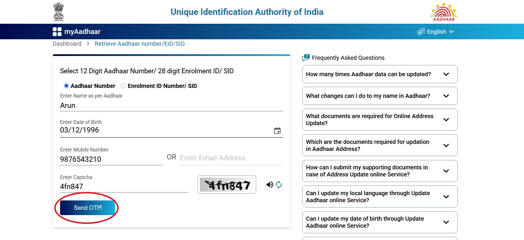 Step-8 : Verify OTP and Follow the Prompt to retrieve Aadhaar Number/EID/SID.