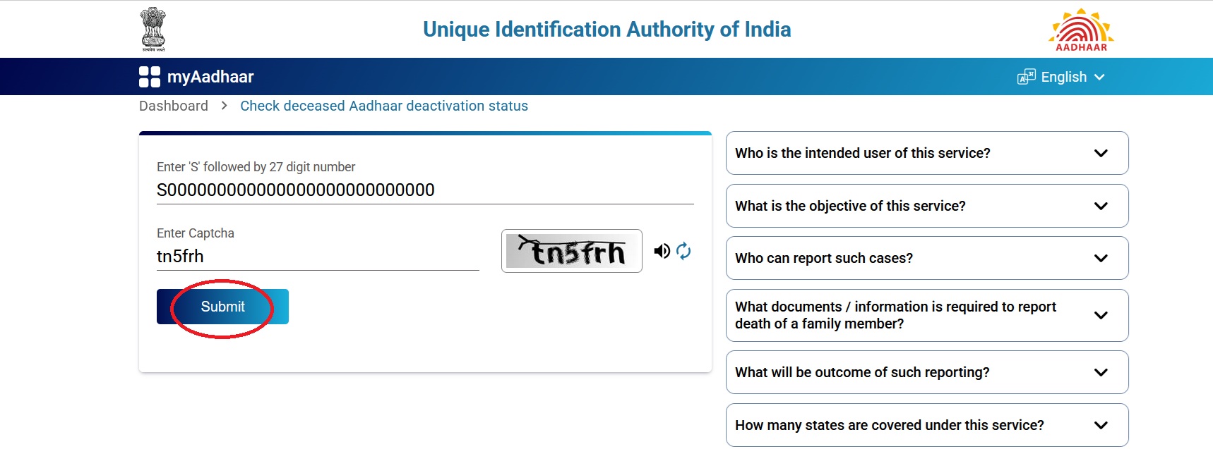 Check Deceased Aadhaar Deactivation Status : myaadhaar.uidai.gov.in