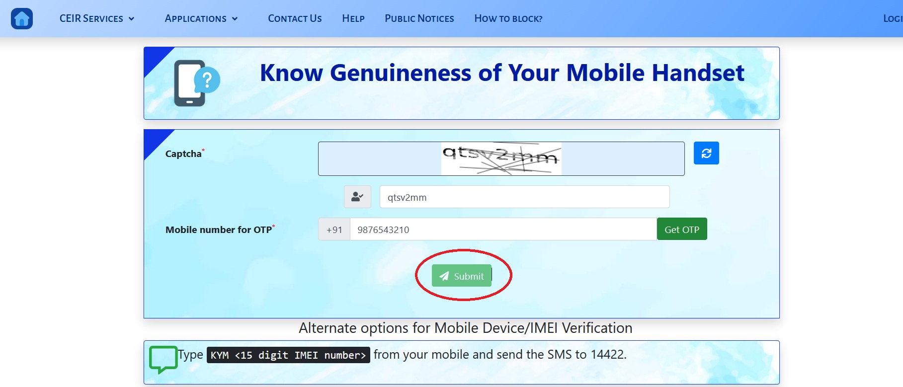 Alternatively, Citizens can download mobile App from Google Play Store and Apple App Store or by sending SMS “KYM<15 digit IMEI number>” to 14422.