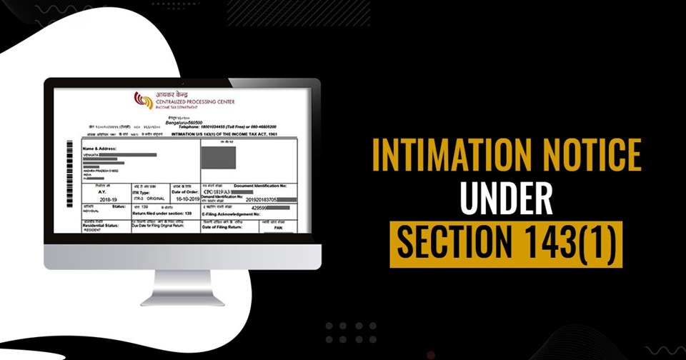 Intimation refers to the processing of returns by the Centralised Processing Centre (CPC). In this, all Income-tax returns filed under Section 139 or in response to a notice under Section 142(1) are processed to verify and fix the arithmetical errors, apparent errors, tax calculation, and tax payments. At this stage, no verification of the income is undertaken. Intimation is required to be issued within 9 months from the end of the financial year in which the return is furnished by the assessee.