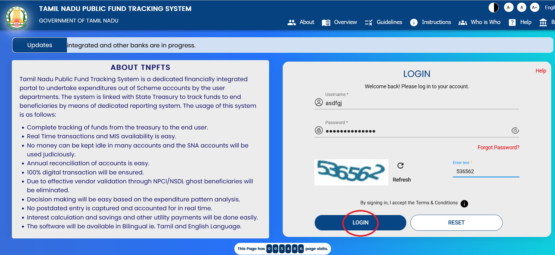 To login to Tamil Nadu Public Fund Tracking System, Follow the below steps