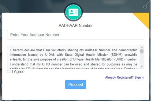 ** Type UHID, Aadhaar, Mobile No