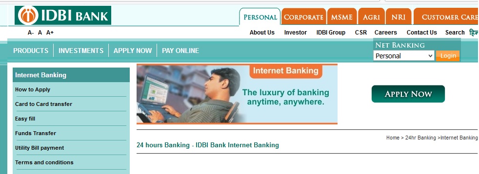 IDBI Bank provides its customers, 24 hours online banking services – anytime, anywhere with its Internet Banking.