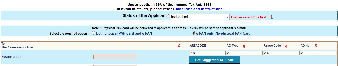 1. Application for a PAN card should be made on the UTIITSL given form or the form given by the Service Center of IT PAN, or the website