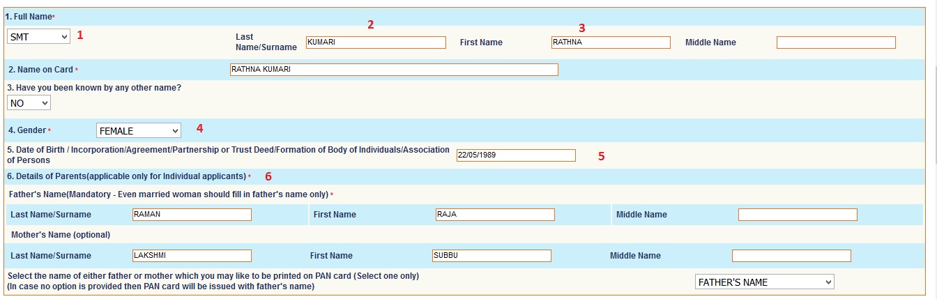 Step 6 : Enter Fathers First Name & Last Name[Raja Raman]