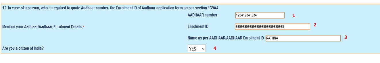 In case of a person, who is required to quote Aadhaar number/ the Enrolment ID of Aadhaar application form as per section 139AA