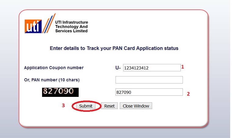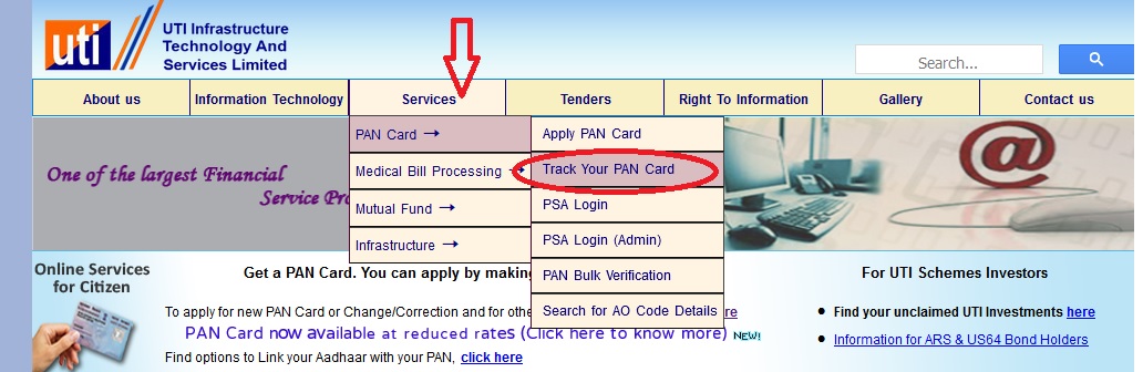 Go to the link of Track PAN Card status available in the home page of UTIITSL as shown below