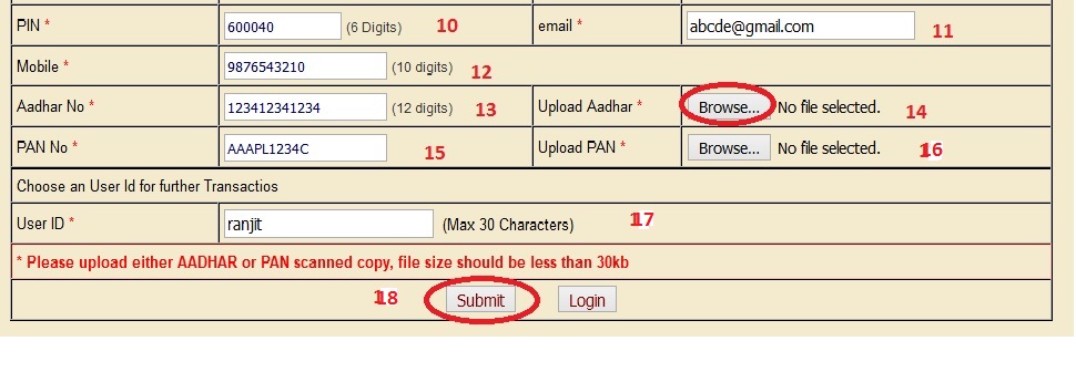 14. Upload Aadhar – Click “Browse” to upload Aadhar document for the corresponding Aadhar No.