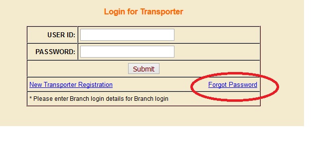 Click the above link,then Click on the link Transporter Login,select on the link Forget Password