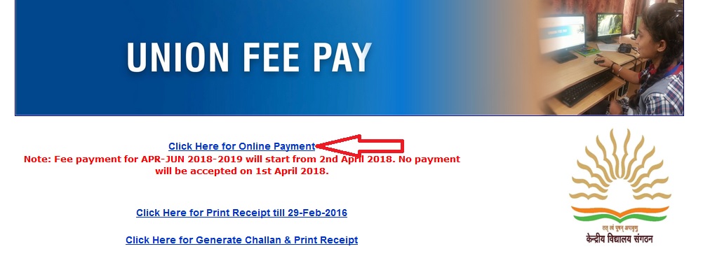 Go to the above link to make fee payment for Kendriya Vidyalaya Sangathan .