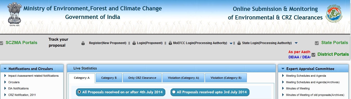 environmentclearance.nic.in Online Environment Clearance System : Ministry of Environment,Forests & Climate Change