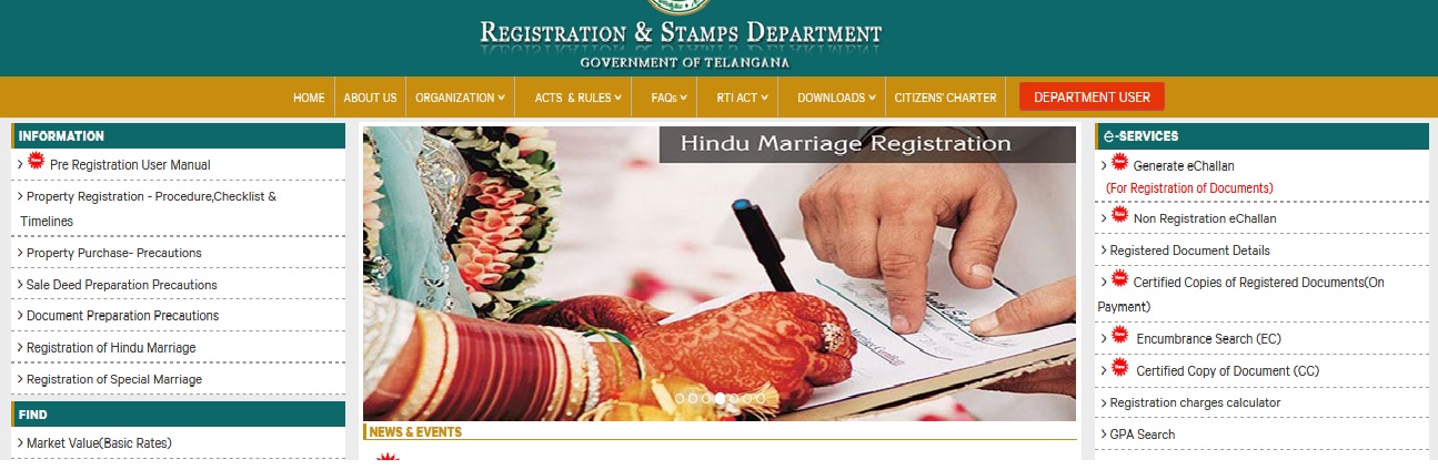 The Registration and Stamps Department is age old department functioning way back from the year 1864. The object of the department is to give publicity to the registered documents.