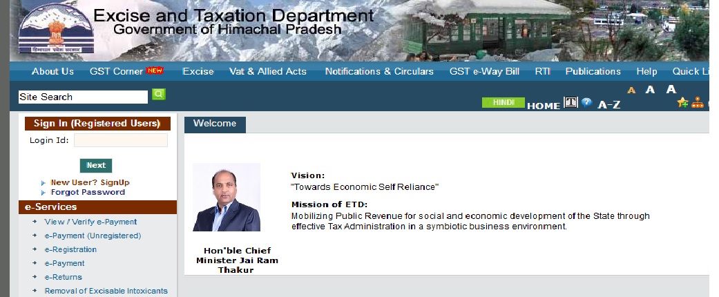 hptax.gov.in New User Sign Up : Himachal Pradesh Excise & Taxation Department